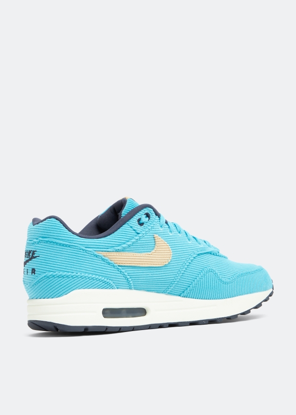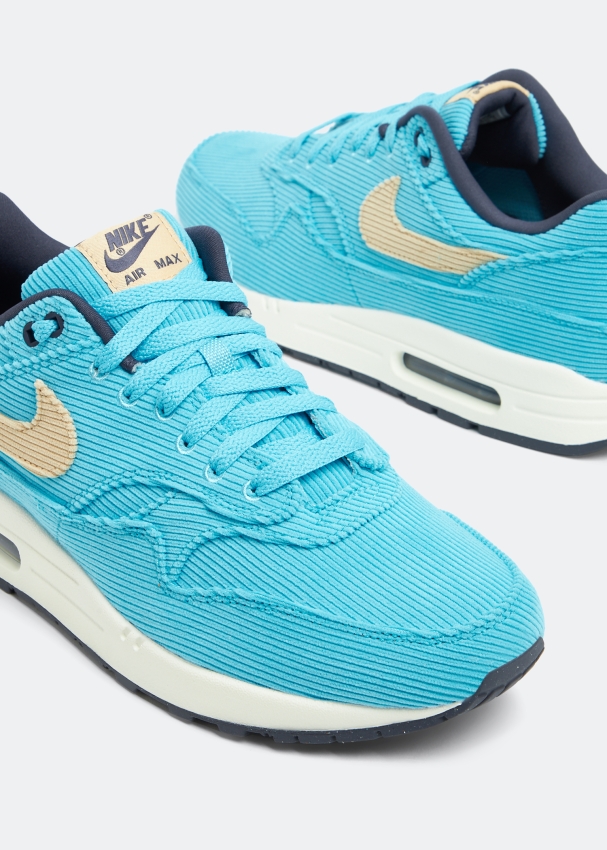 Nike ditches the traditional design and swaps in a full corduroy upper to create the Air Max 1 'Baltic Blue' sneakers. This vibrant design features tan Swooshes and tongue tabs, complete with tonal laces, and the tried-and-tested cushioning with a rubber outsole and wavy mudguard.