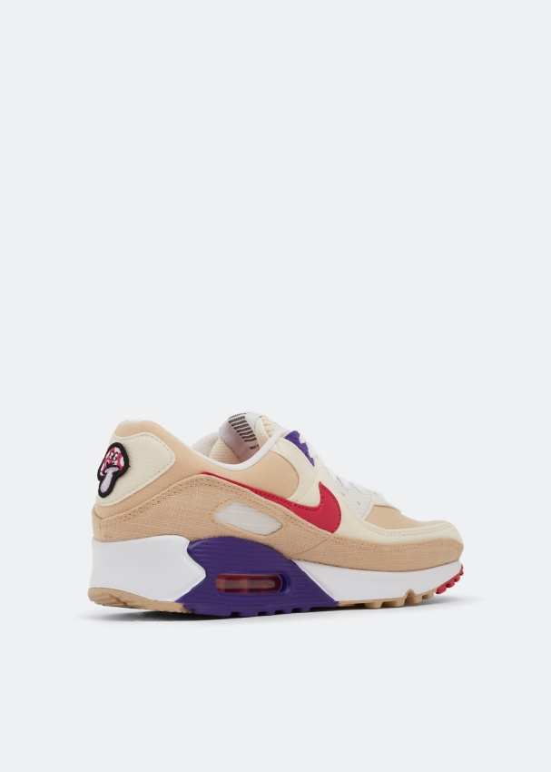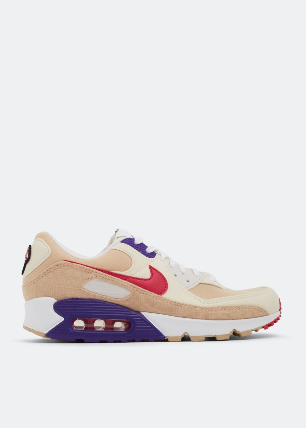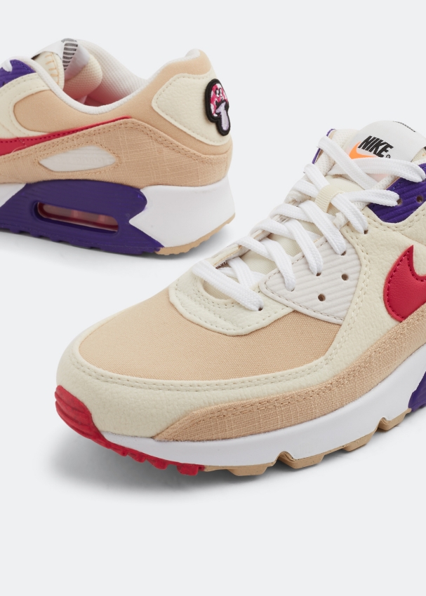 Part of Nike's latest 'Air Sprung’ collection that features recycled materials, these Air Max 90 sneakers feature a Sesame, Rush Pink, Coconut Milk, and Phantom colourway. Made from tumbled leather, canvas and a burlap-like material, they're finished with a butterfly on the left insole, a removable mushroom on the heel, vibrant purple and pink contrasting accents and a speckled outsole.