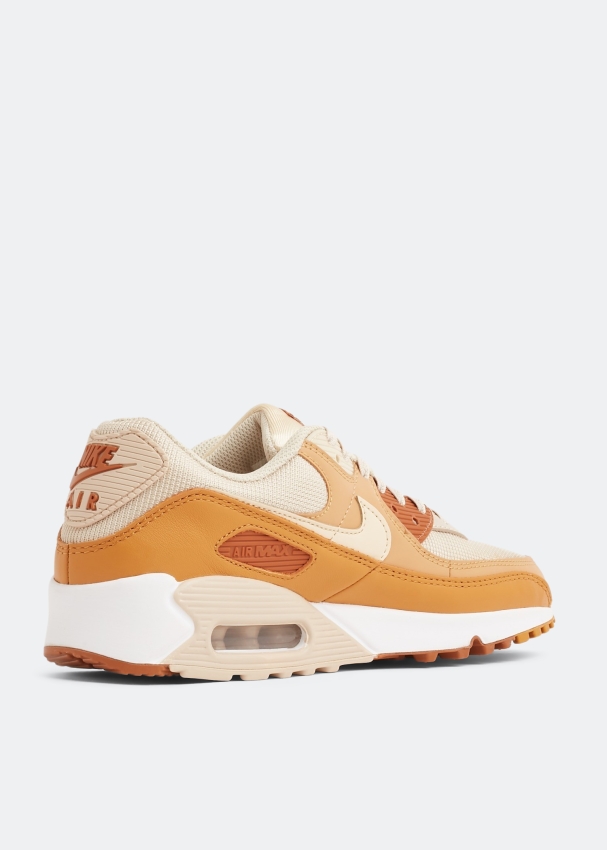 Another must-have rendition of the Air Max 90, Nike presents this classic sneaker in a 'Caramel' colourway. Crafted from different shades of leather and mesh, they feature leather Swooshes, and a gum outsole. Take note of the padded tongue with a canvas twill and 'Air Max' embroidery.