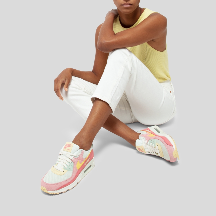 Update your sneaker collection with Nike's new Air Max 90 "Sea Glass" sneakers. Imagined in vivid pastels, the pair has a breathable textile upper and boasts the collection's classic silhouette. They're finished with suede accents, branding on the heel, flat laces, profile Swooshes and an Air-Sole unit.