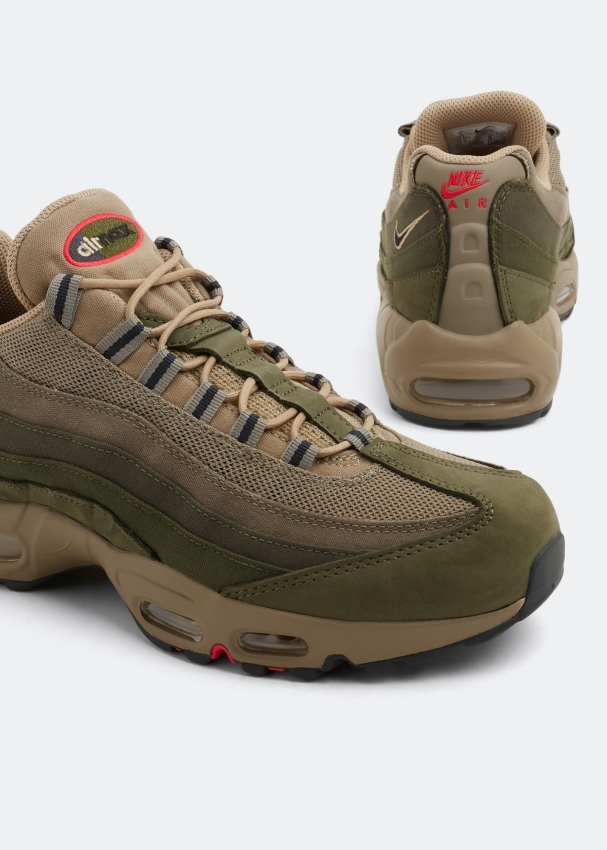 Moving with strength and fluidity, these Nike Air Max 95 'Rough Green' sneakers are designed with an innovative lacing system that creates a custom fit. Made from a mix of mesh, canvas and suede, these shoes feature classic flex grooves on the outsole for natural movement.