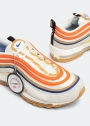 Paying homage to Frank Rudy, the man who created the coveted cornerstone of cushioning—Air, these Nike Air Max 97 SE sneakers are designed with the release date stamped on the Air unit, a barometer gauge hangtag and an info card that talks about his invention. Key details on this pair also include a see-through "Air pocket" heel, a hidden lacing system that creates a streamlined look, a printed sockliner and a rubber outsole.