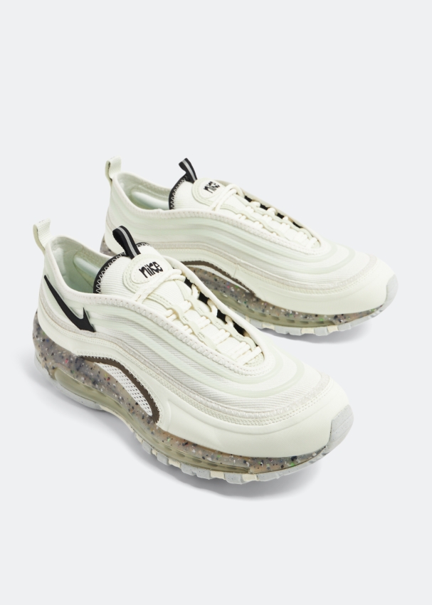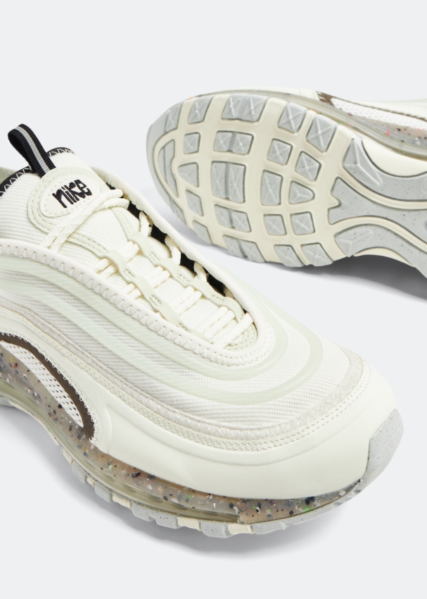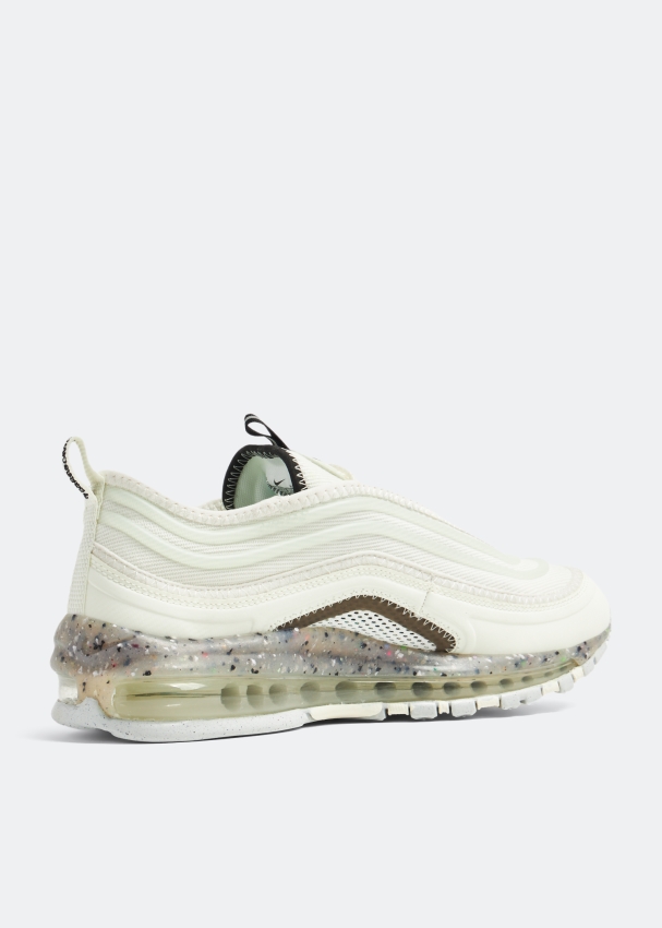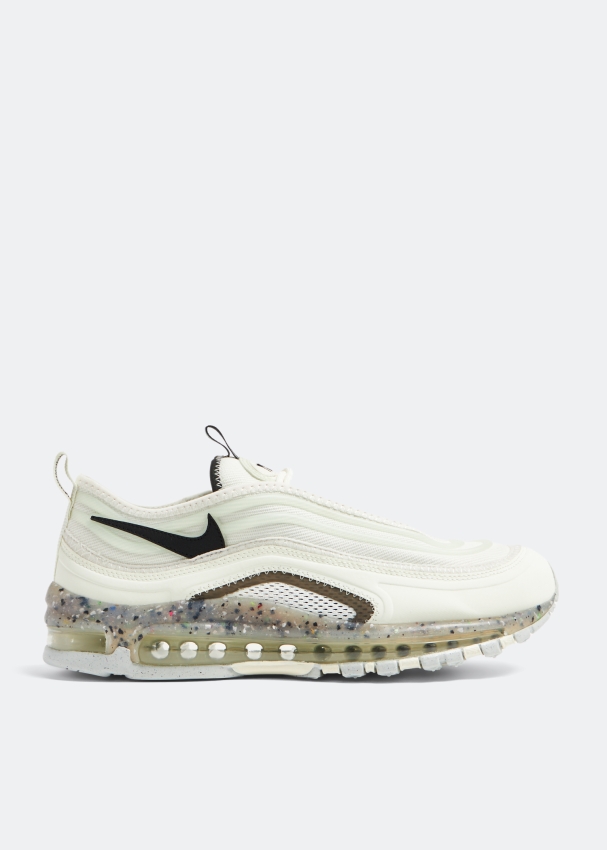 Nike looks to nature to create the Air Max 97 'Terrascape' sneakers. Made in part with recycled content showcasing the original's ripple design inspired by Japanese bullet trains, they feature a low-top silhouette and hidden lacing system for a streamlined look. They're built on the signature full-length Air-Cushioning sole with a speckled Nike Grind outsole for traction, durability and a playful, earthy look.
