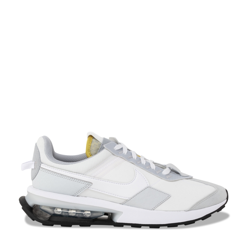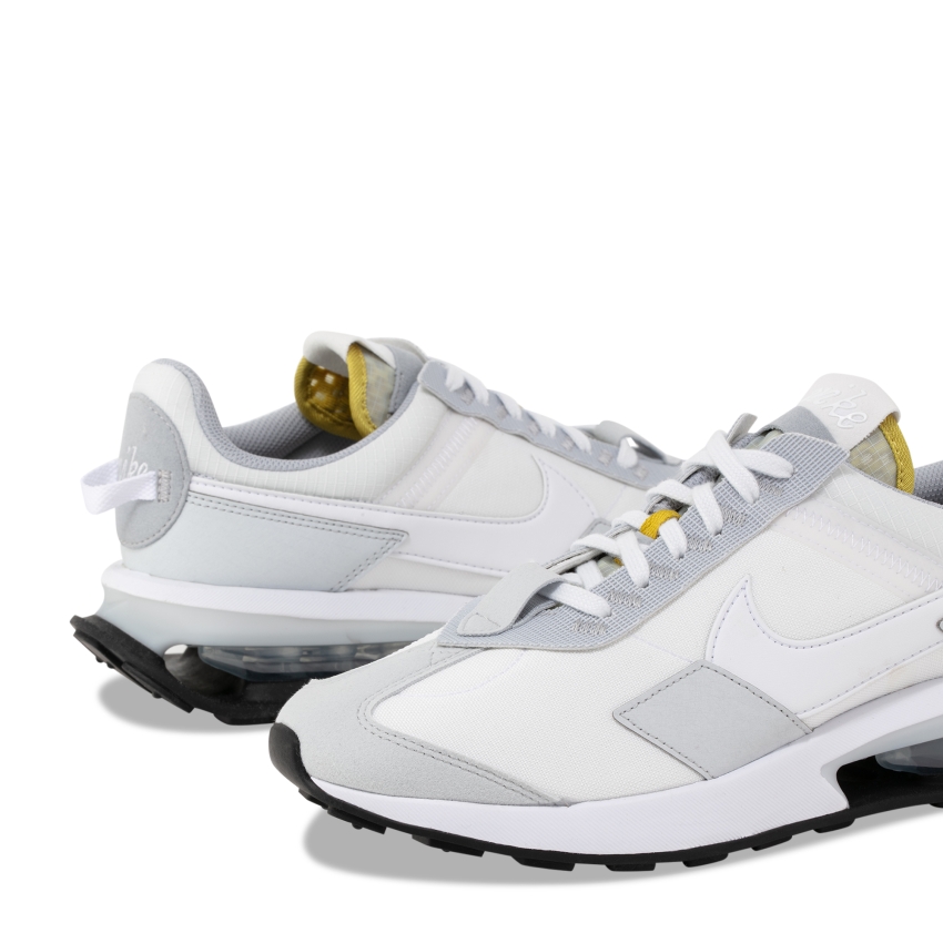 Inspired by the revolutionary footwear that helped Nike build its brand on the oval, these Pre-Day sneakers recall a throwback athletics aesthetic while incorporating fresh breakthroughs that are spearheading the next era of Air. Made of mesh, nylon and synthetic leather, the pair is anchored by a reductive design concept featuring tonal flat laces, yellow trim on the tongue, profile Swooshes and an exposed Air Unit that creates a uniquely soft bounce in the heel.
